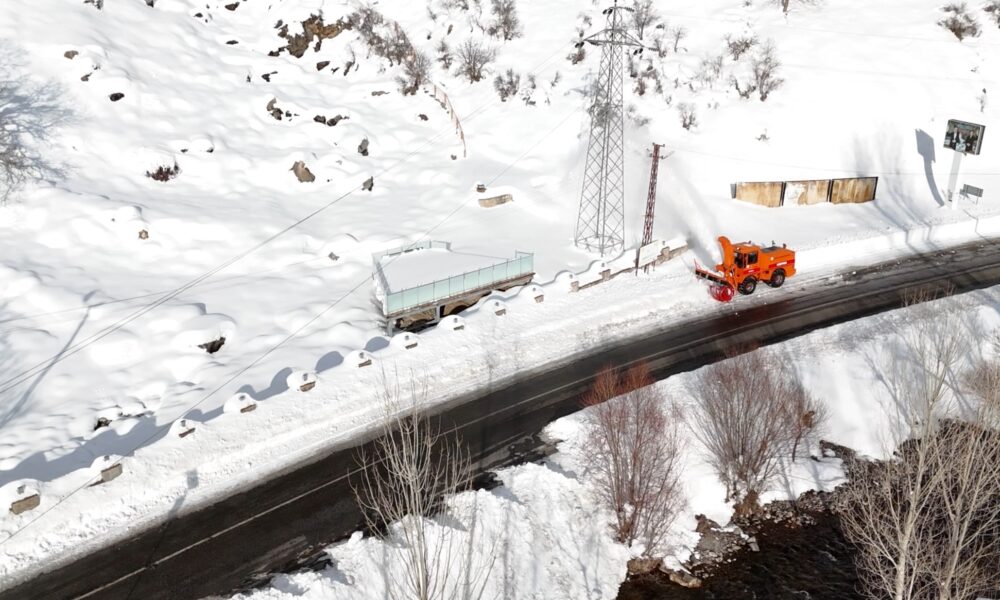 Kentte 1 hafta boyunca aralıkla etkili olan kar yağışı sonrası Van-Çatak kara yoluna 6 gün önce çığ düştü. Kapanan yolun açılması için Karayolları 11’inci Bölge Müdürlüğü’ne bağlı karla mücadele ekipleri, yoğun çalışma yürütüyor. 3 iş makinesiyle yapılan çalışmalar sonrası kara yolu, dün tek şeritten ulaşıma açıldı. Yolun çift şeritten açılması için de Karayolları ekipleri, yoğun şekilde çalışmaya devam ediyor. Çığ bölgesinde yer yer 7 metreyi bulan kar kütleleri arasında, kar savurma makinesinin yol genişletme çalışmaları dronla görüntülendi.
