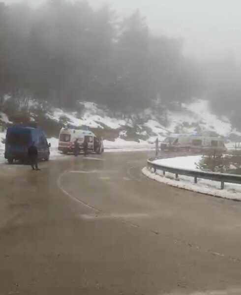 • Bursa’da Uludağ yolunda buzlanmadan dolayı kayan tuzlama aracı, karşı yönden gelen otomobile çarptı. Şarampole düşen otomobildeki 3 kişi yaralandı. Fotoğraf: Bursa, (DHA)