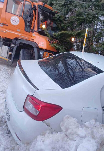 Uludağ yolunda kayan tuzlama aracı otomobile çarptı; 3 yaralı