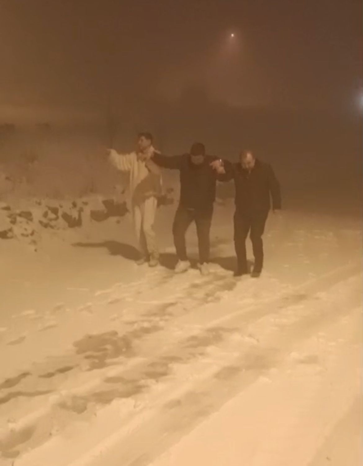 Türkiyenin önemli kış turizmi merkezlerinden Uludağda hafta sonu etkili olan kar yağışıyla birlikte yerler beyaz örtüyle kaplandı. Kar yağışının keyfini çıkarmak isteyenler pistlere akın ederken, kayak yapmaya giden 3 arkadaş da kar yağışını horon oynayarak kutladı. O anlar cep telefonu kamerasıyla görüntülendi.