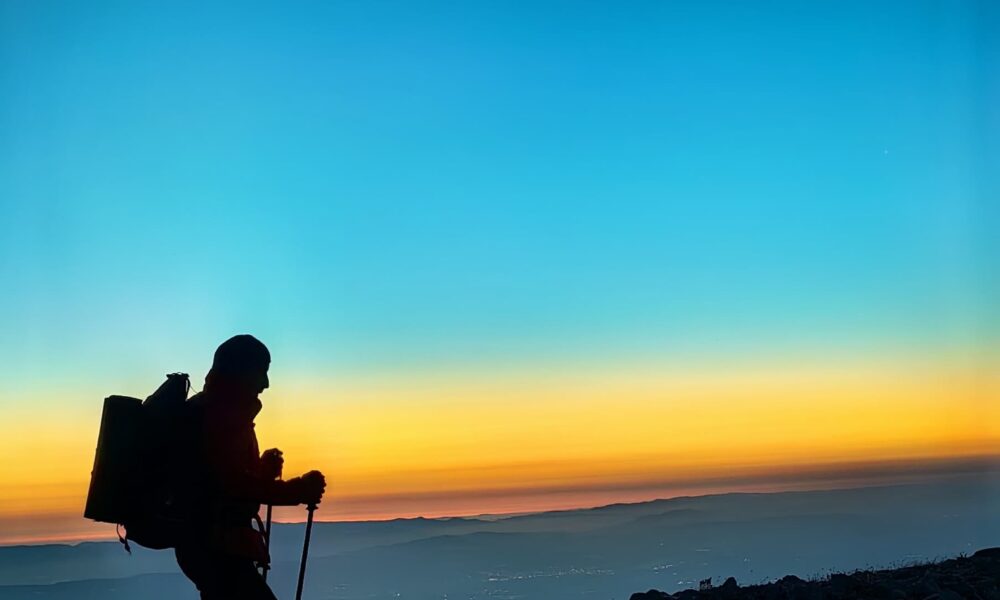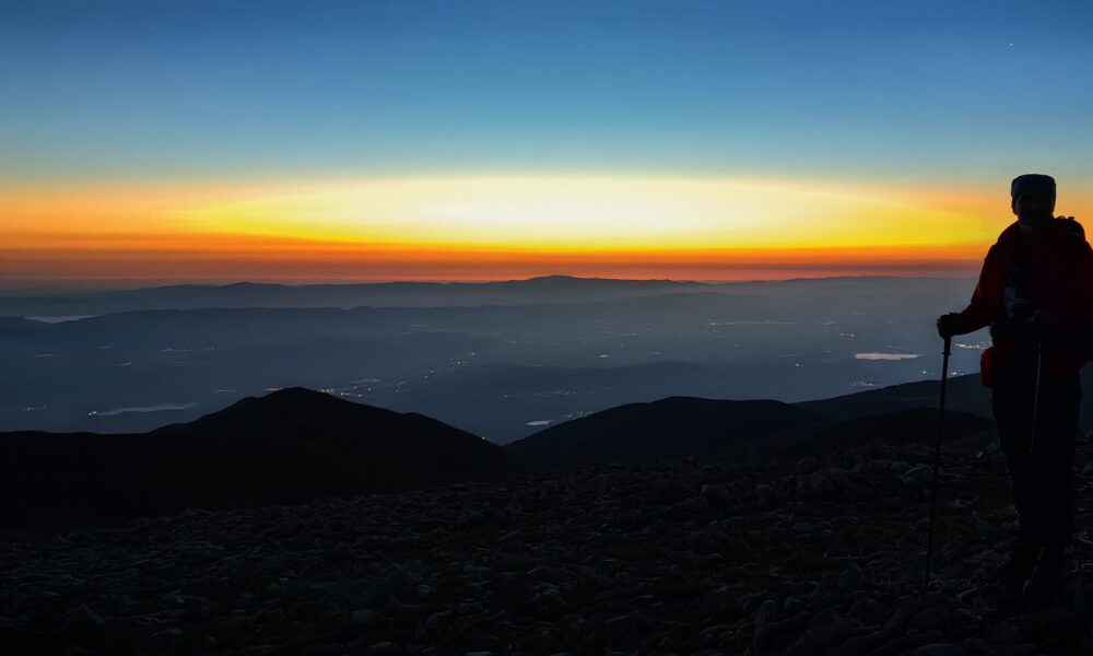 Yürüyüşlerine devam eden dağcılar, saat 05.00’da ise 2 bin 543 metre yüksekliğindeki zirveye ulaştı. Dağcılar burada da güneşin doğuşuna tanıklık etti. Gün ağarırken, gökyüzünde oluşan renk şölenini fotoğraflayan dağcılar, ayın batışı ile güneşin doğuşunu da aynı anda görüntüledi.
