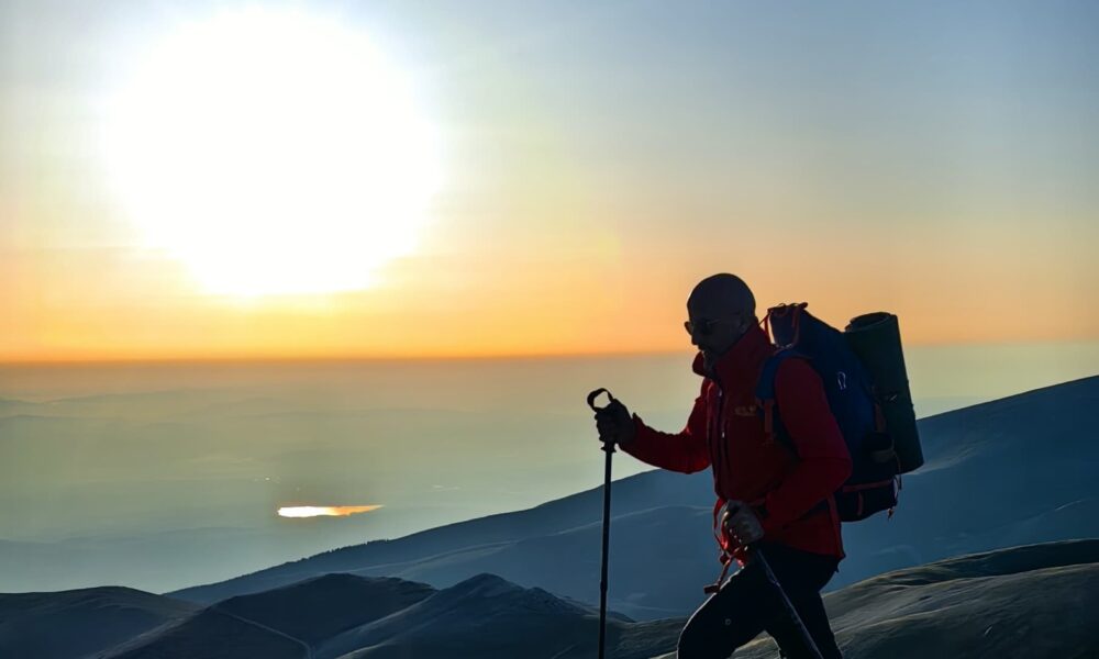 Uludağ’ın zirvesinde gün doğumu; güneş ve ayı aynı anda görüntülediler