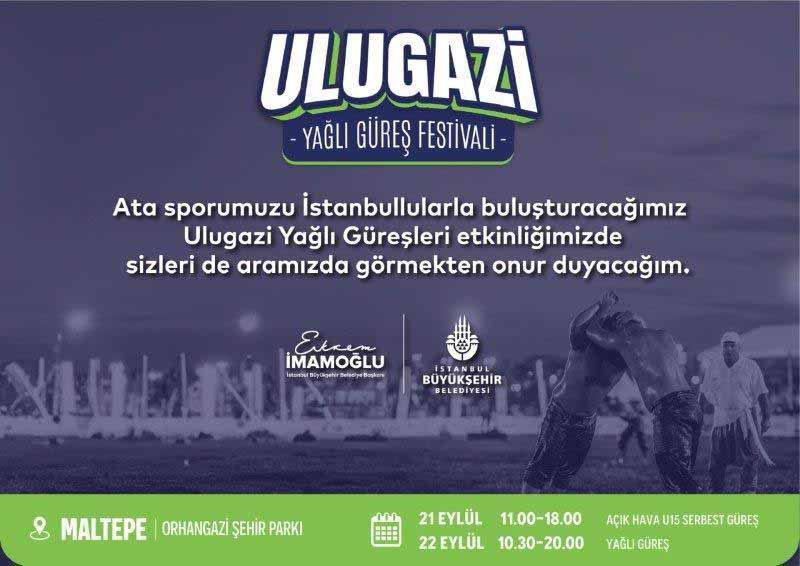 İBB Spor İstanbulun her yıl düzenlediği Ulugazi Yağlı Güreş Festivali, 21-22 Eylül tarihlerinde Maltepe Orhangazi Şehir Parkında yapılacak.