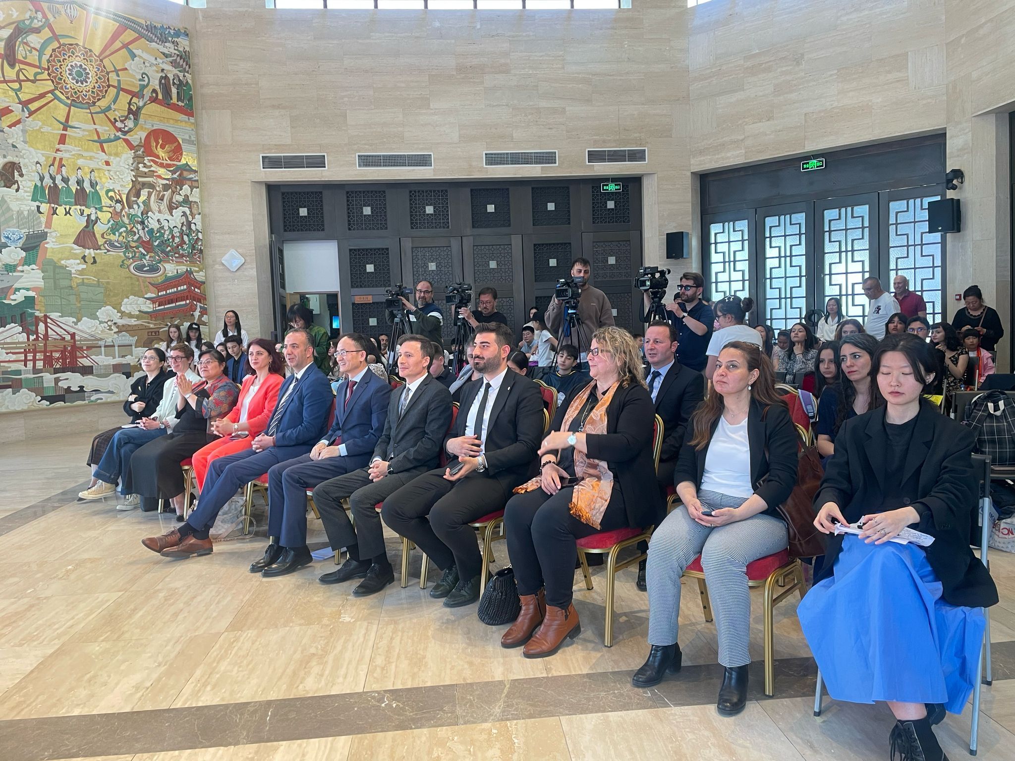 Büyükelçisi Jiang Xuebin, “2010 yılında Birleşmiş Milletler 20 Nisanı ‘Birleşmiş Milletler Çin Dili Günü’ olarak belirlemiştir. Dil, bir ülkeyi anlamanın anahtarıdır. Çinin hızlı gelişimi ve küreselleşmenin derinleşmesiyle birlikte, Çince öğrenme talebi dünya çapında giderek artmaktadır. Şu anda 190dan fazla ülke ve bölge Çince dil programları oluşturmuş ve 85 ülke Çinceyi ulusal eğitim sistemlerine dahil etmiştir. Şu anda 30 milyondan fazla insan yurtdışında Çince öğrenmektedir. ‘Uluslararası Çince Dil Günü’nün bu yılki teması ‘Çince: Zamanı ve Mekânı Aşan Bir Hediye’ olarak belirlenerek Çincenin sadece zamanı aşan, tarih ile bugünü birbirine bağlayan bir köprü değil, aynı zamanda Çini dünyaya bağlayan, mekânı aşan bir köprü olduğu bir kez daha teyit edilmiştir. Bugün Türkiyede pek çok insanın, özellikle de gençlerin Çince öğrendiğini ve Çin kültürüne karşı derin bir sevgi beslediğini görmekten büyük memnuniyet duyuyorum. Çinceyi gayretli bir şekilde öğrenmeniz, Çin kaligrafisi, savaş sanatları, klasik şiir ve Çin kültürünün diğer yönlerini geniş bir şekilde araştırmanız ve ‘Uluslararası Çin Dili Günü’ ve ‘Mutlu Bahar Festivali’ gibi etkinliklere aktif katılımınız, Çin ile Türkiye arasındaki karşılıklı anlayış, kültürel değişim ve dostane ilişkilerin geliştirilmesinde önemli ve olumlu bir rol oynamıştır” dedi.