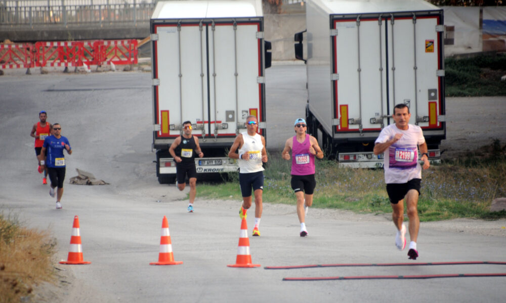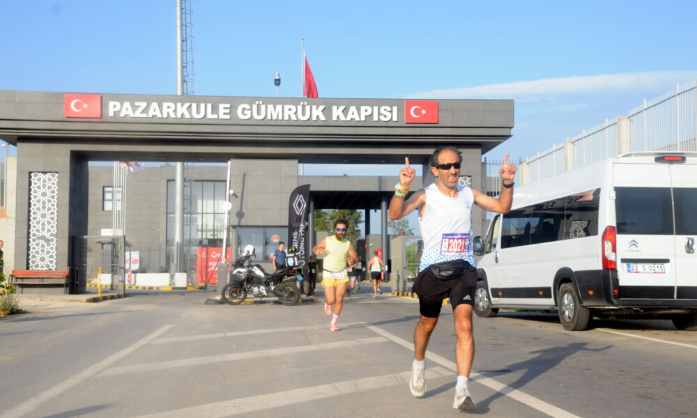 Edirne'de düzenlenen Uluslararası Edirne Maratonu’nda yaklaşık 800 atlet, Türkiye-Yunanistan sınırını oluşturan Pazarkule Sınır Kapısı'nı da kapsayan 10 ve 21 kilometrelik parkurda yarıştı. Fotoğraf: Olgay GÜLER / Edirne, (DHA)