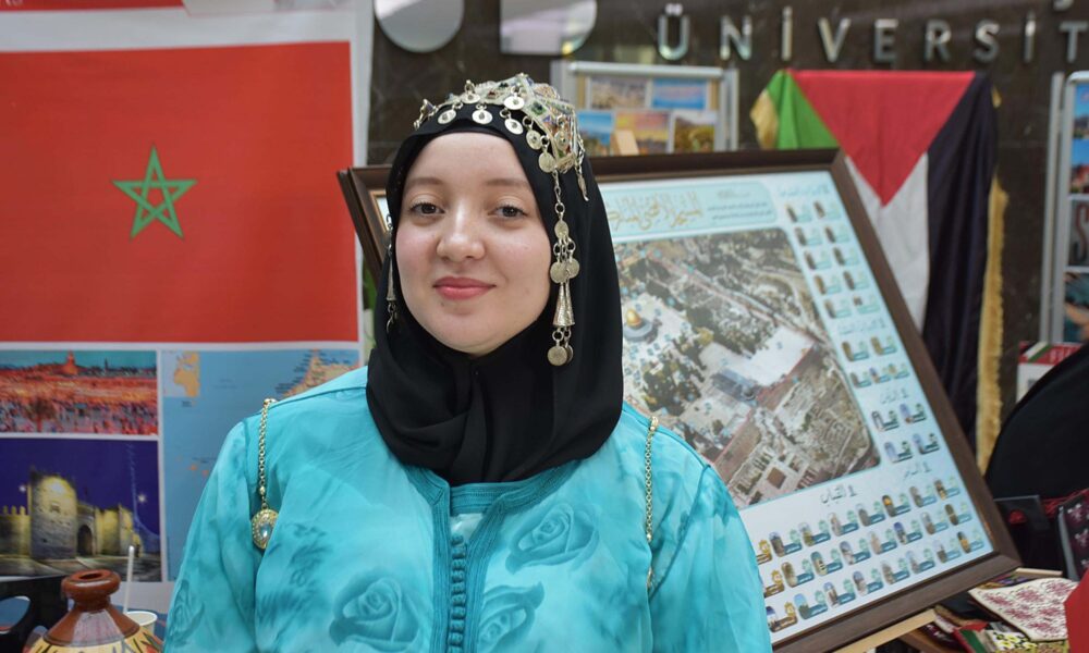 İzmir'deki devlet üniversitelerinde eğitim gören 100'ü aşkın uluslararası öğrenci,kültürlerini, yöresel kıyafetlerini, kültürel öğelerini ve geleneksel yemeklerini tanıttı.Nour Dahmani (Fotoğrafta).Fotoğraf:Seza Nur ALPDÜNDAR/İzmir,(DHA)