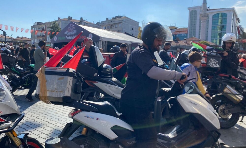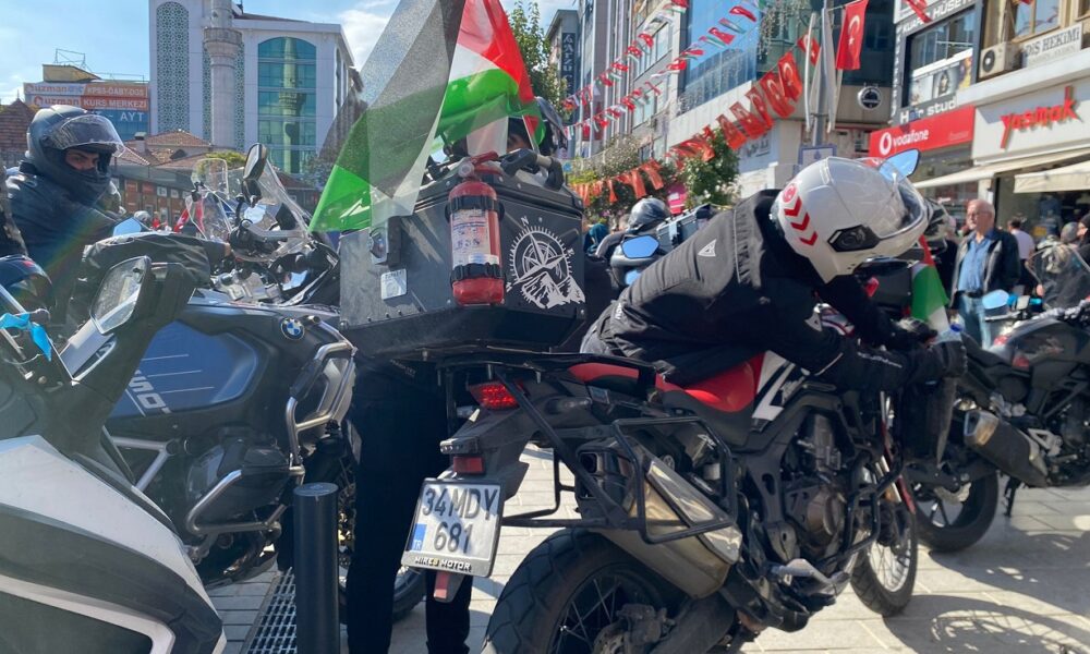 Gazze’de yaşananlara dikkat çekmek amacıyla yapılan etkinlikte, yaklaşık 2 bin motorcu bir araya gelerek toplu sürüş yaptı.