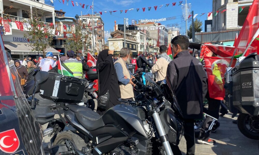 Muhafazakar Motorcular Kulübü’nden Murat Sağır ise “Şuna inanıyorum ki bugün burada yaklaşık 2 bin motorcu toplandı. Bir emir gelse bize bir yol açılsa 20 binler 200 binler ile motosikletlerimizle Gazze’ye gidecek arkadaşlarım olduğunu biliyorum. Sadece silahla çatışmamıza gerek yok inanın egzoz seslerimizle onları alt edeceğimize eminim, zaten bir avuçlar” diye konuştu.