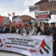 Açıklamanın ardından yürüyüşe katılanlar, 10 günlük oturma eylemine destek vermek için İHH tarafından kampüs içinde kurulan çadırlara geçti.