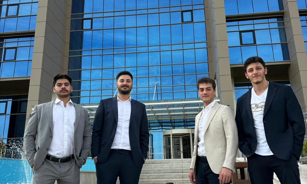 • Elektrik-Elektronik Mühendisliği öğrencileri Ali Soner Kurt (en sol) Eren Yasan (ortada) ve Mustafa Göktuğ Kanmaz(ortada) Efe Tanrıkulu (en sağ) yapay zeka destekli otonom kamikaze insansız hava aracı (İHA) geliştirdi. Fotoğraf: Ankara, (DHA)
