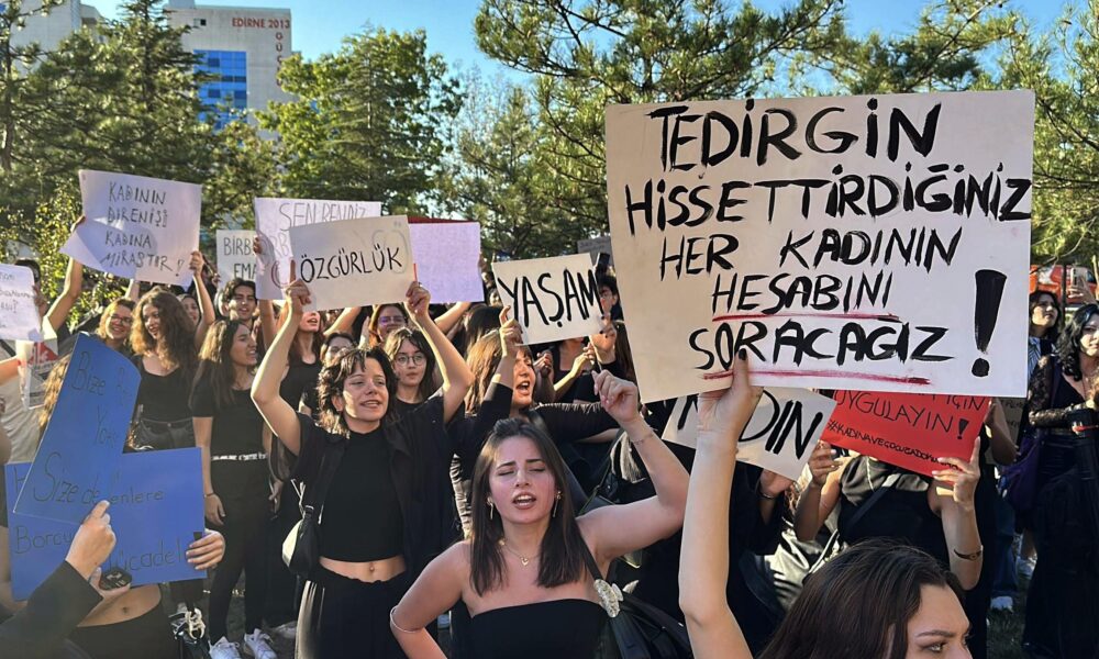 Trakya Üniversitesinin Karaağaç yerleşkesinde bulunan Güzel Sanatlar Fakültesi öğrencileri, son dönemde yaşanan kadın ve çocuk cinayetlerine tepki amaçlı yürüyüş düzenledi. Yürüyüşe siyah giyinerek katılan yaklaşık 500 öğrenci, Karaağaç Mahallesinden üniversitenin kent girişindeki Balkan Yerleşkesine kadar yaklaşık 10 kilometre boyunca yürüdü. Güzel Sanatlar Fakültesi resim bölümü öğrencisi Eray Süzen, insanlara seslerini duyurarak farkındalık yaratmak istediklerini belirtti. Süzen, “Biz Güzel Sanatlar Fakültesi öğrencileri olarak okulda son yaşanan olaylardan dolayı siyah giymek istiyorduk. Siyah giymişken bir de buraya kadar yürüyelim dedik. Sırf insanlara sesimizi duyurmak için 10 kilometre yürüdük. Herkese geldiği için teşekkür ederim. Bir erkek olarak yapılanları kınıyorum ve bu insanların kendi cinsiyetimden olduğunu düşünmüyorum. Kadınlarımız için, çocuklarımız için, ülkede olan tüm vahşet için tepkimizi koymak adına yürüdük aslında” dedi.