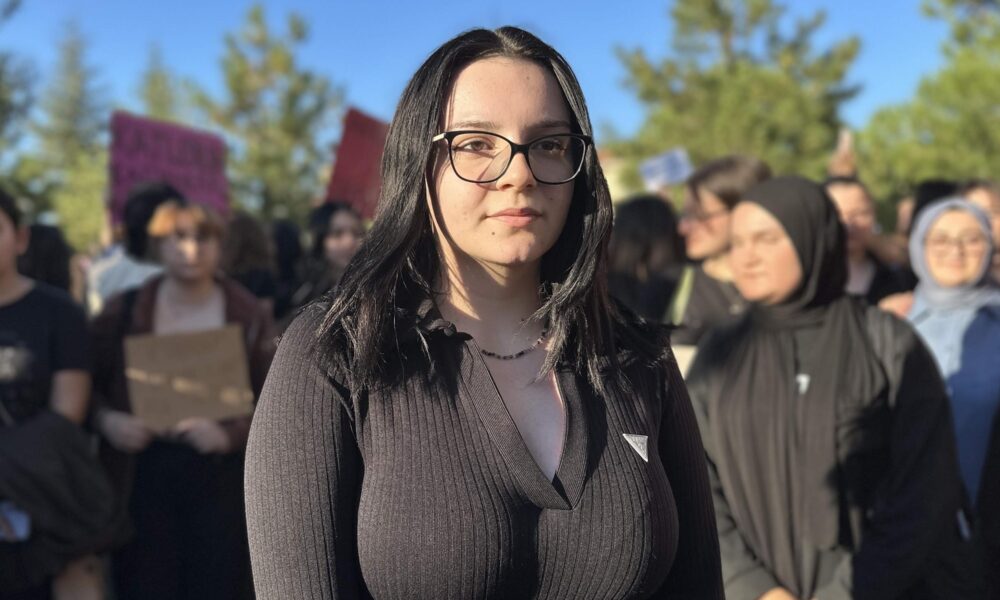 Güzel Sanatlar Fakültesi öğrencisi Ayşe Dila Varan da, şiddete maruz kalan her çocuk ve kadının yanında olduklarını anlattı. Varan, “Üniversite öğrencileri olarak son 1 ayda öldürülen 30dan fazla kadın ve çocuk için yürüyüş yapma kararı aldık. Karaağaçtaki Güzel Sanatlar Fakültesinden buraya kadar yürüdük. Sağ olsun arkadaşlarımız bizi kırmadılar ve bizimle birlikte seslerini duyurmak için eşlik ettiler. Hepsine çok teşekkür ediyorum. Biz öldürülen ve şiddete maruz kalan her kadın, çocuk ve insanın yanındayız. Asla yalnız yürümeyecekler, bunu da tekrar söylüyoruz. Bugün herkes yas amacıyla siyah giyindi. Biz de arkadaşlarımızla birlikte bu nedenle siyah giydik” diye konuştu.