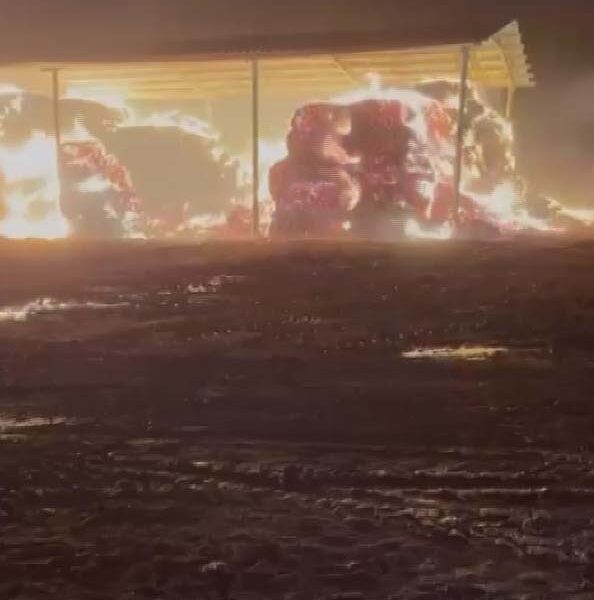 Unutulan ateşin közünden sıçrayan kıvılcımlar, çiftlikteki saman balyalarını yaktı