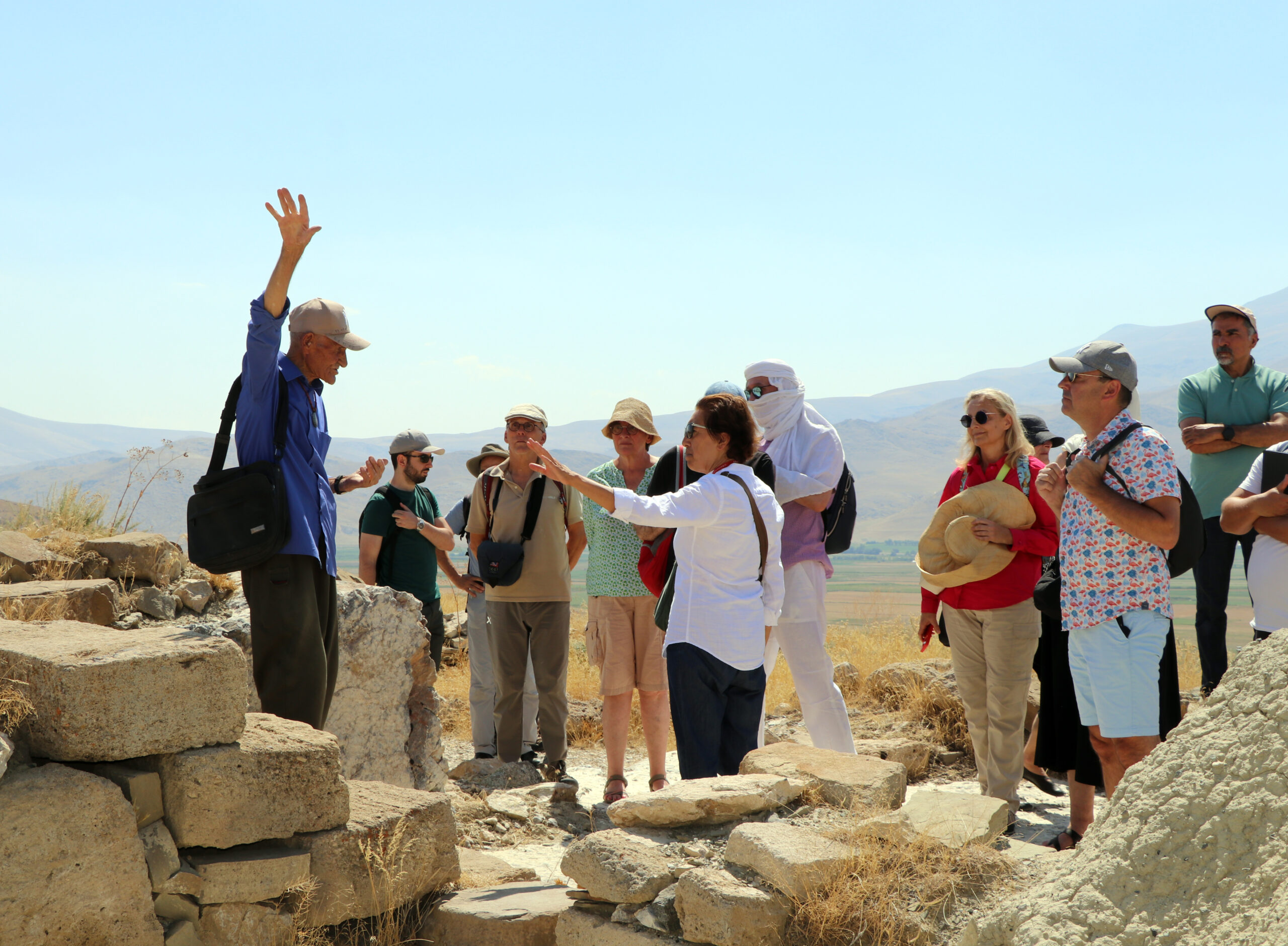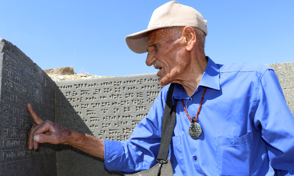 • Van'ın Gürpınar ilçesinde Urartu dönemine ait Çavuştepe Kalesi'nde son 19 yılı gönüllü olmak üzere 62 yıldır bekçilik yapan 11 çocuk babası Mehmet Kuşman (84) (Fotoğrafta mavi gömlekli), dünyada Urartuca bilen 12 kişiden biri olduğunu, ancak kendisinden s