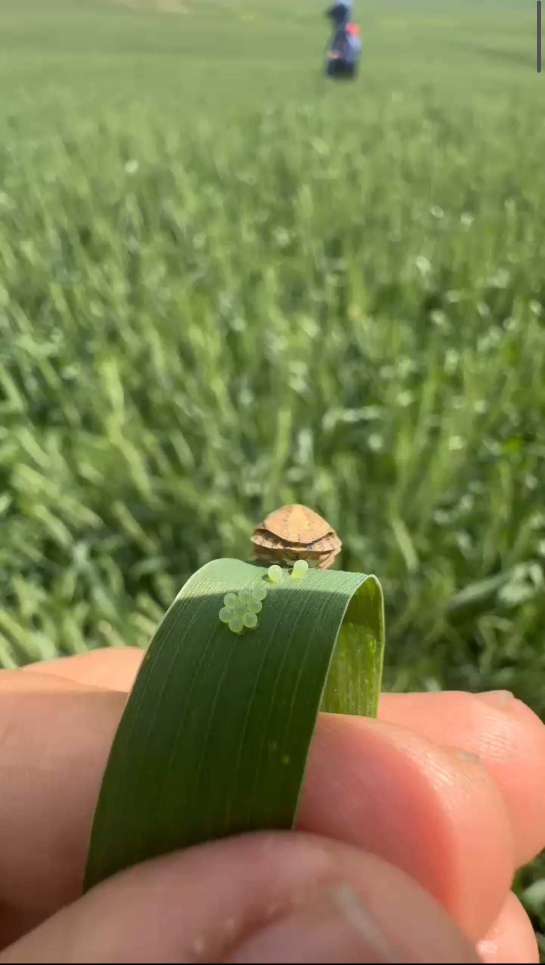 • Batman'da yürütülen süne ile mücadele çalışmaları kapsamında saha çalışması yapan Ziraat Yüksek Mühendisi Serhat Yaşar (Fotoğrafta), süne böceğinin buğday yaprağına yumurtlama anını cep telefonu kamerasıyla kayıt altına aldı. Fotoğraf: Batman, (DHA)