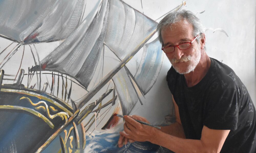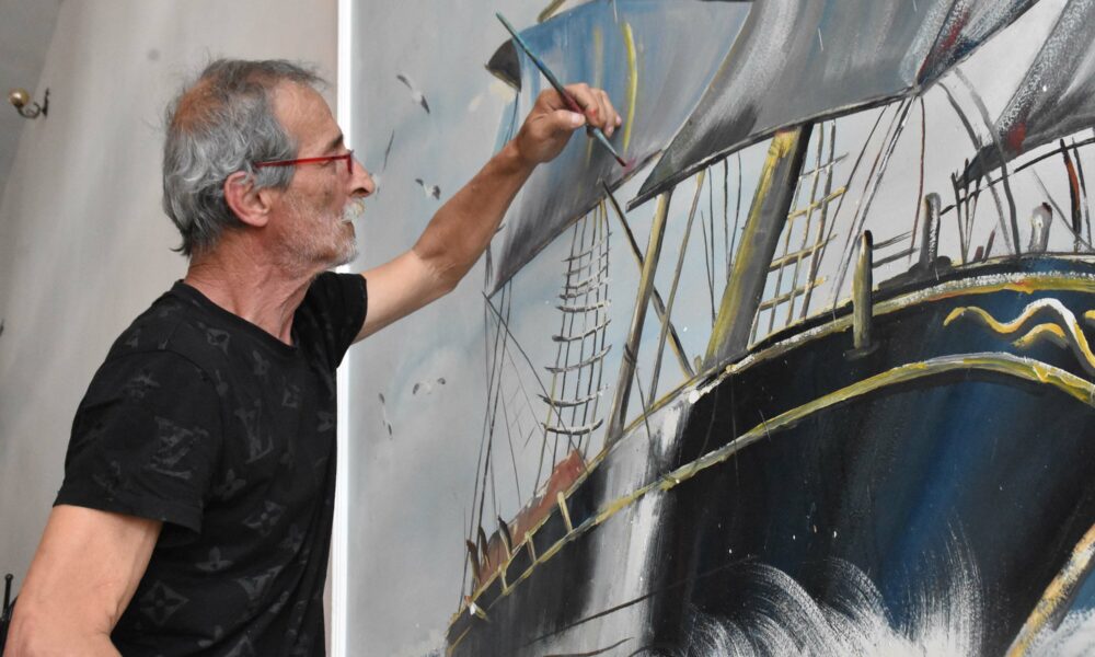 • İzmirli eski kaleci Atilla Uçan (63) (Fotoğrafta), yaşamını spora ve resim tutkusuna adadı.Fotoğraf:Seza Nur ALPDÜNDAR/İzmir,(DHA)