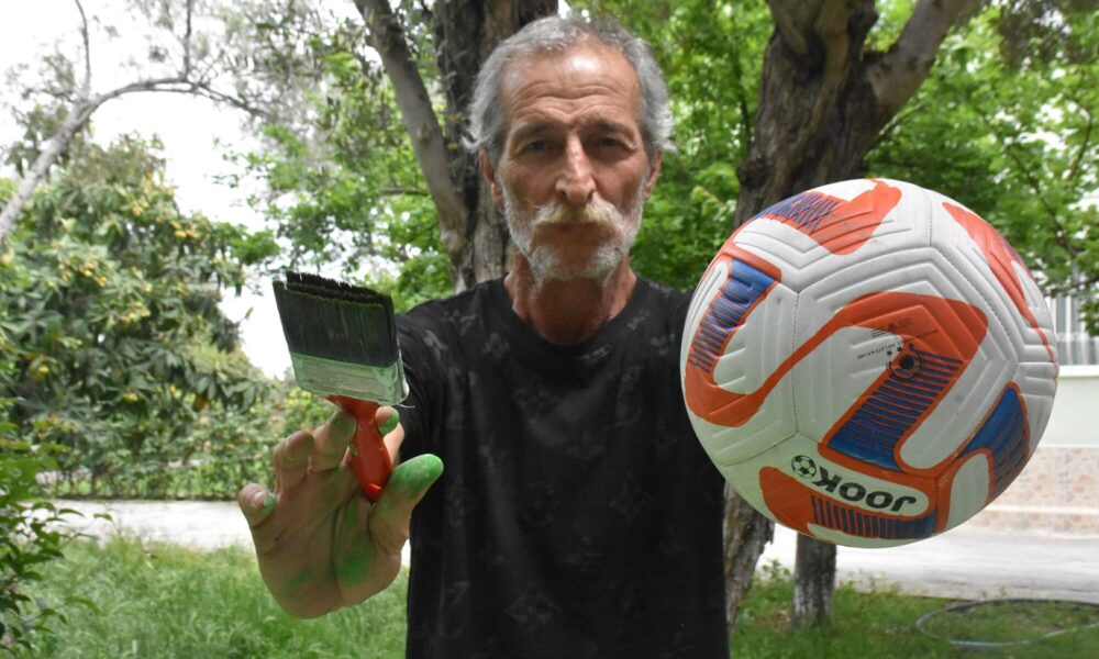 • İzmirli eski kaleci Atilla Uçan (63), yaşamını spora ve resim tutkusuna adadı.Fotoğraf:Seza Nur ALPDÜNDAR/İzmir,(DHA)