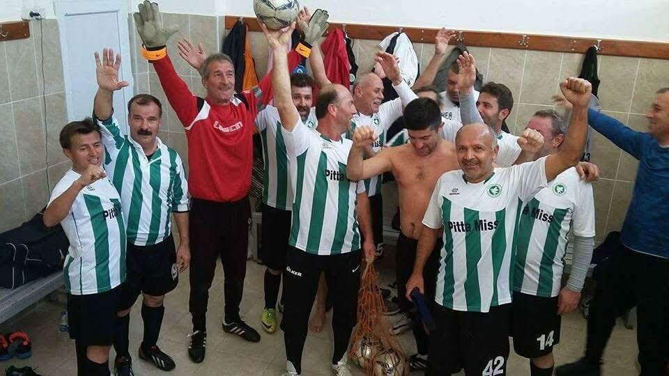 • İzmirli eski kaleci Atilla Uçan (63) (Soldan ikinci), yaşamını spora ve resim tutkusuna adadı.Fotoğraf:İzmir,(DHA)