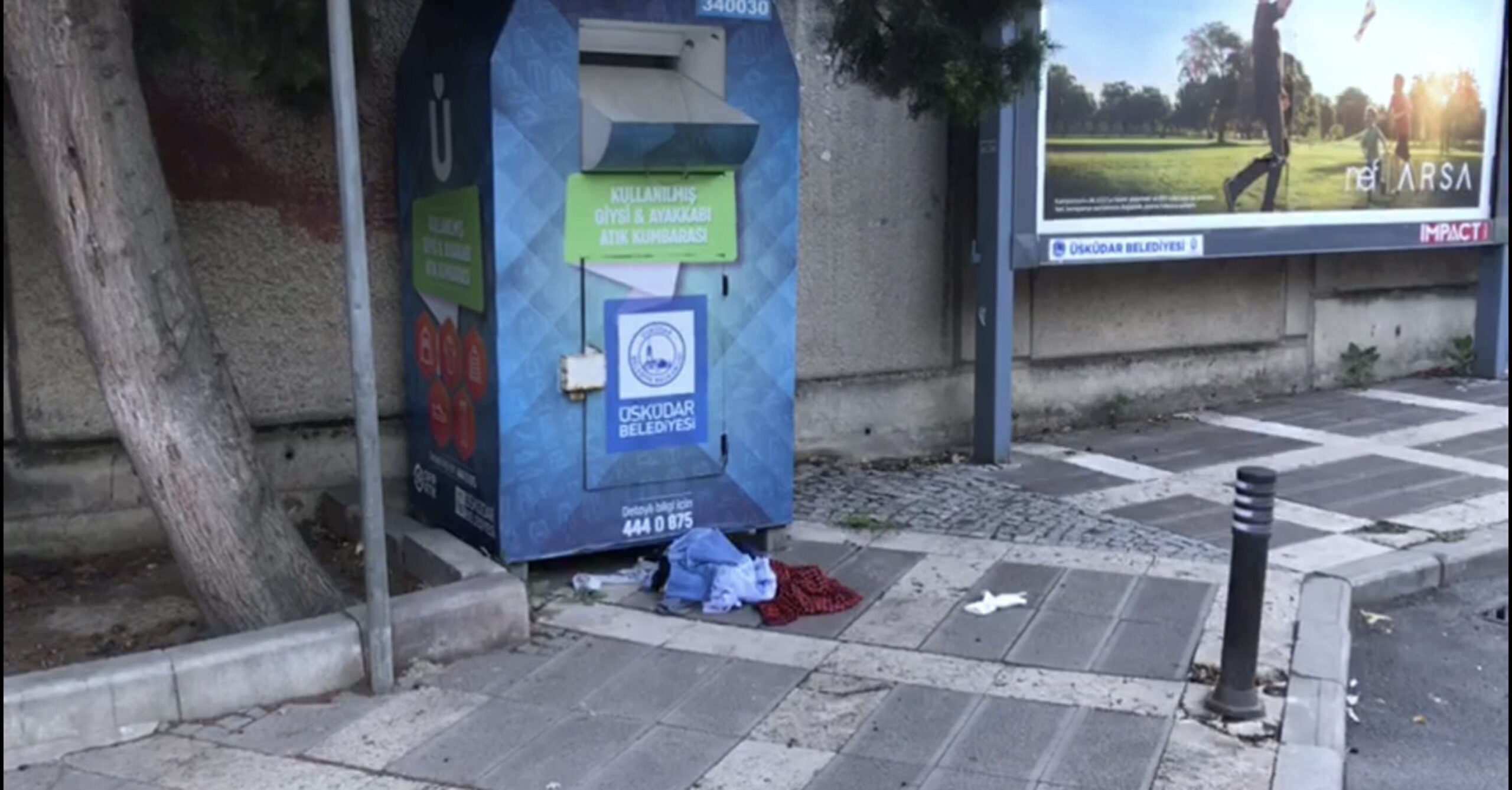 Üsküdar Barbaros Mahallesi’nde dün öğle saatlerinde çekçekli motor kullanan bir erkek ve kadın, çocuğunu atık giysi kumbarasının içine sokarak, ihtiyaç sahipleri için bırakılan giysileri boşalttı. Bu sırada çevredekilerin cep telefonu kamerasıyla kendisini görüntülediğini fark eden kadın ve çocuk, giysilerin bir kısmını yerde bırakarak hızla uzaklaştı.
