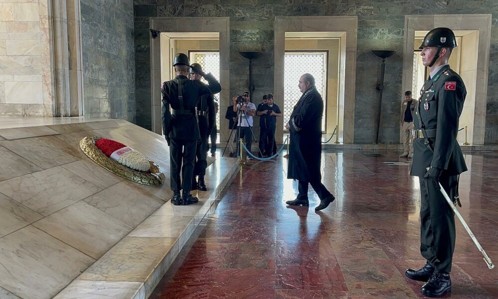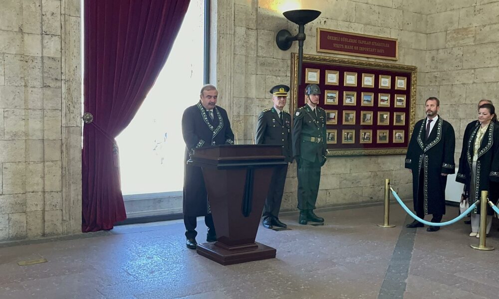 Uyuşmazlık Mahkemesi Başkanı Rıdvan Güleç başkanlığındaki heyet Aslanlı Yoldan yürüyüp, Ulu Önder Mustafa Kemal Atatürkün mozolesine çıktı. Güleçin, mozoleye çelenk bırakmasının ardından heyet, saygı duruşunda bulundu. Ardından Misak-ı Milli Kulesine geçildi. Anıtkabir Özel Defterini imzalayan Güleç, şunları yazdı.