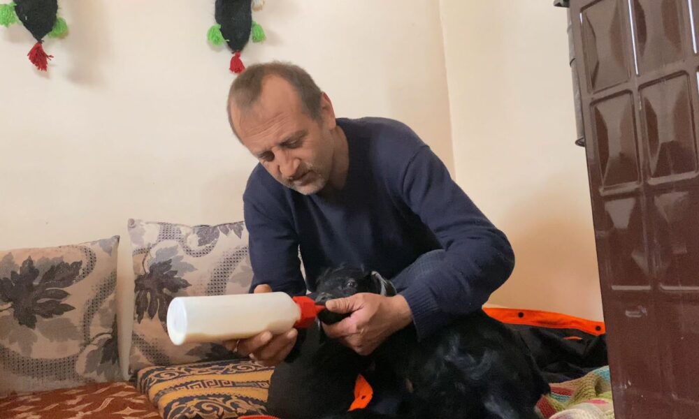 Uyutulsun denilen felçli oğlak ‘Mıstık’a şefkatle bakıyor