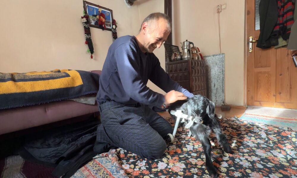 Mıstık’ın hareket özgürlüğü sağlamak amacıyla yürüteç yaptırmaya çalışan Turan, “İlk yaptırdığım yürüteç biraz küçük geldi, 2 tane daha tekerlek eklenerek yenisini yapacağız. Onu daha rahat hareket ettirebilmek için elimden geleni yapıyorum. Sonuçta Mıstık da bir canlı ve yaşama hakkı var. Onun için mücadele edeceğim. 24 keçim, 5 köpeğim ve güvercinlerimle burada yaşıyorum” dedi.