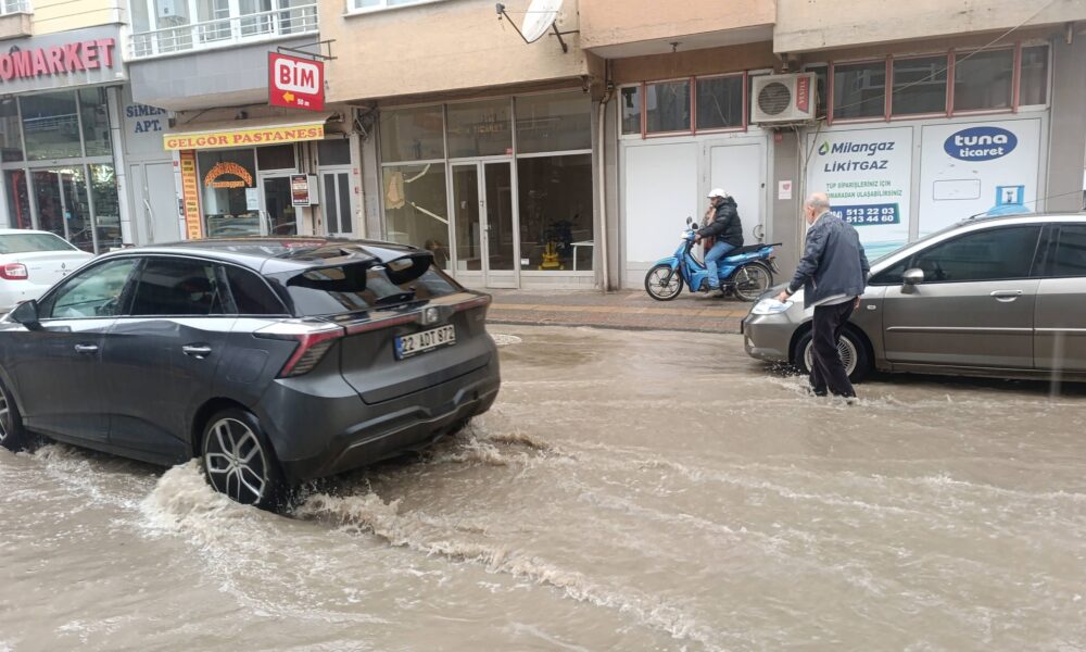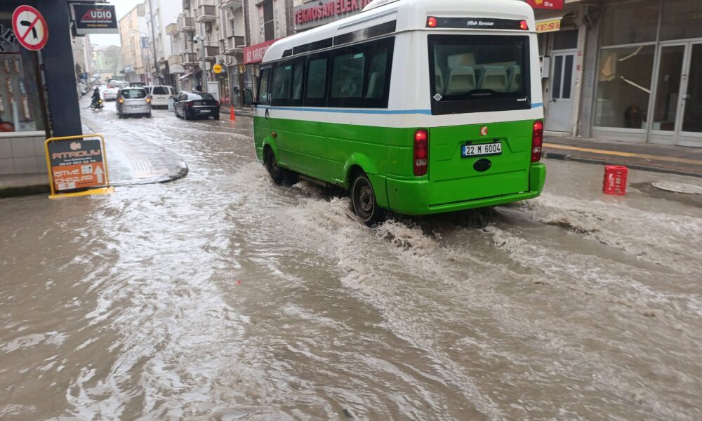 Uzunköprü’de sağanak; yollar göle döndü