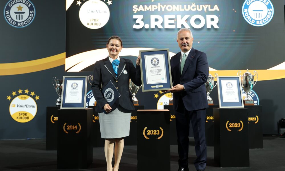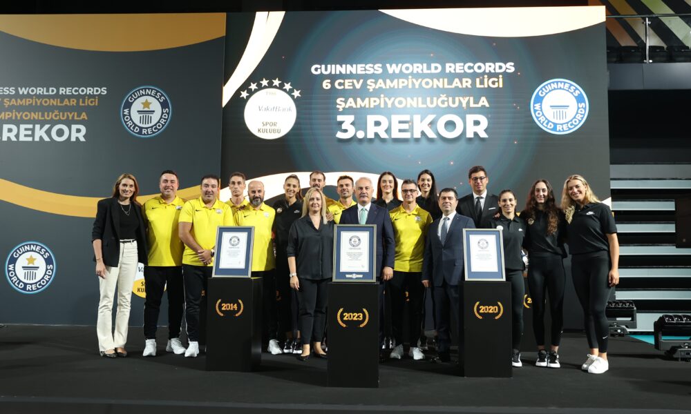 VakıfBank, Guinness Dünya Rekorları’na 3’üncü kez girdi ve bir büyük başarıya daha imza attı. 4’ü namağlup olmak üzere 6 şampiyonlukla CEV Şampiyonlar Ligi’ni en çok kazanan takım olan sarı-siyahlılar, bu başarısıyla bir kez daha rekor kırdı. VakıfBank Spor Sarayı’nda düzenlenen basın toplantısında Guinness Hakemi Şeyda Subaşı Gemici, VakıfBank Spor Kulübü Başkanı Abdi Serdar Üstünsalih, VakıfBank Genel Menajeri Banu Can Schürmann, Başantrenör Giovanni Guidetti, Ayça Aykaç, Aylin Acar, Bahar Akbay, Cansu Özbay, Derya Cebecioğlu ve Zehra Güneş yer aldı.