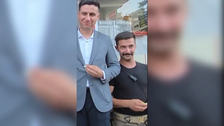 Tunceli Valisi Şefik Aygöl, dün Çemişgezek ilçesinde yaptığı esnaf ziyaretleri sırasında bir iş yerinde kendisine ikram edilen çiğ köfteden aldı. Aygöl, çiğ köfte tabağını yanındakilere uzatarak ikramda bulundu. Koruma polis memuruna sadece marul veren Aygöl, içine çiğ köfte koymayı unuttu. Aygöl’ün o anları ve polis memurunun yüz ifadesi ve çevresindekilerin gülümsemesi kameraya yansıdı. Yaşanan o anlar, sosyal medyada paylaşıldı. Görüntüler kısa sürede çok sayıda kullanıcı tarafından izlenirken, tebessüm ettirdi.