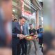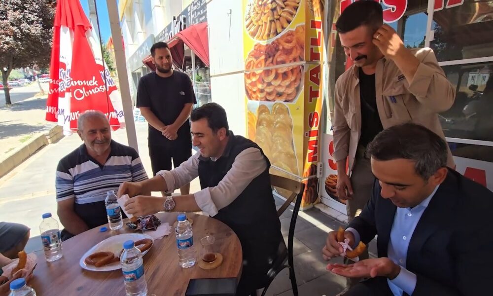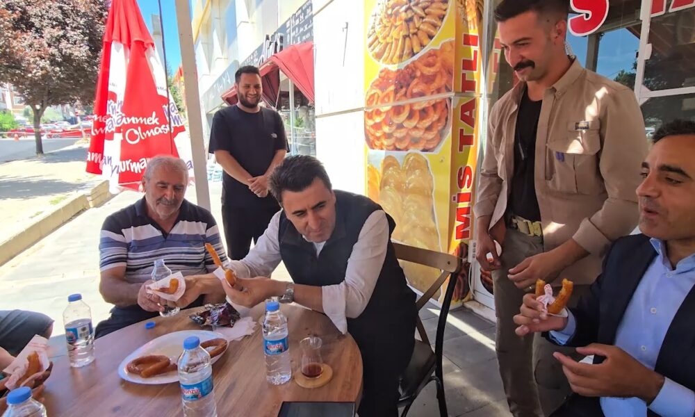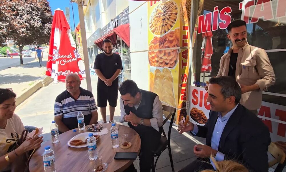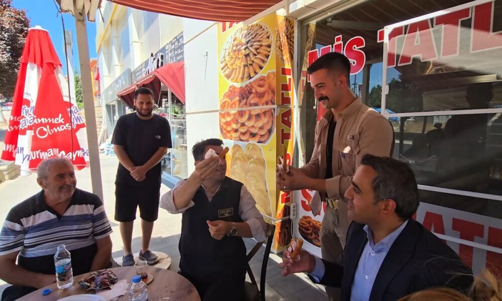 Vali Aygöl, Atatürk Mahallesi’nde sıcak asfalt çalışmalarını yerinde inceleyerek, mahalle sakinleriyle birlikte asfalt serdi. Çalışmalar sırasında mahalledeki bir tatlıcı dükkanına giren Vali Aygöl, beraberindekilere tatlı ısmarladı. Vali Aygöl, önceki gün maruluna çiğ köfte koymayı unuttuğu polis memuruna tatlı ikram ederek, “Kardeş sen neredesin? Çiğköfte akşam, ancak bak şimdiden 2 tatlı. Afiyet olsun ağabeyciğim. İşi tatlıya bağladık. Polislere sahip çıkmam lazım” dedi. Vali Aygöl’ün tatlı ikramı, çevresindekileri gülümsetti.
