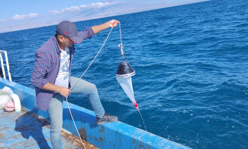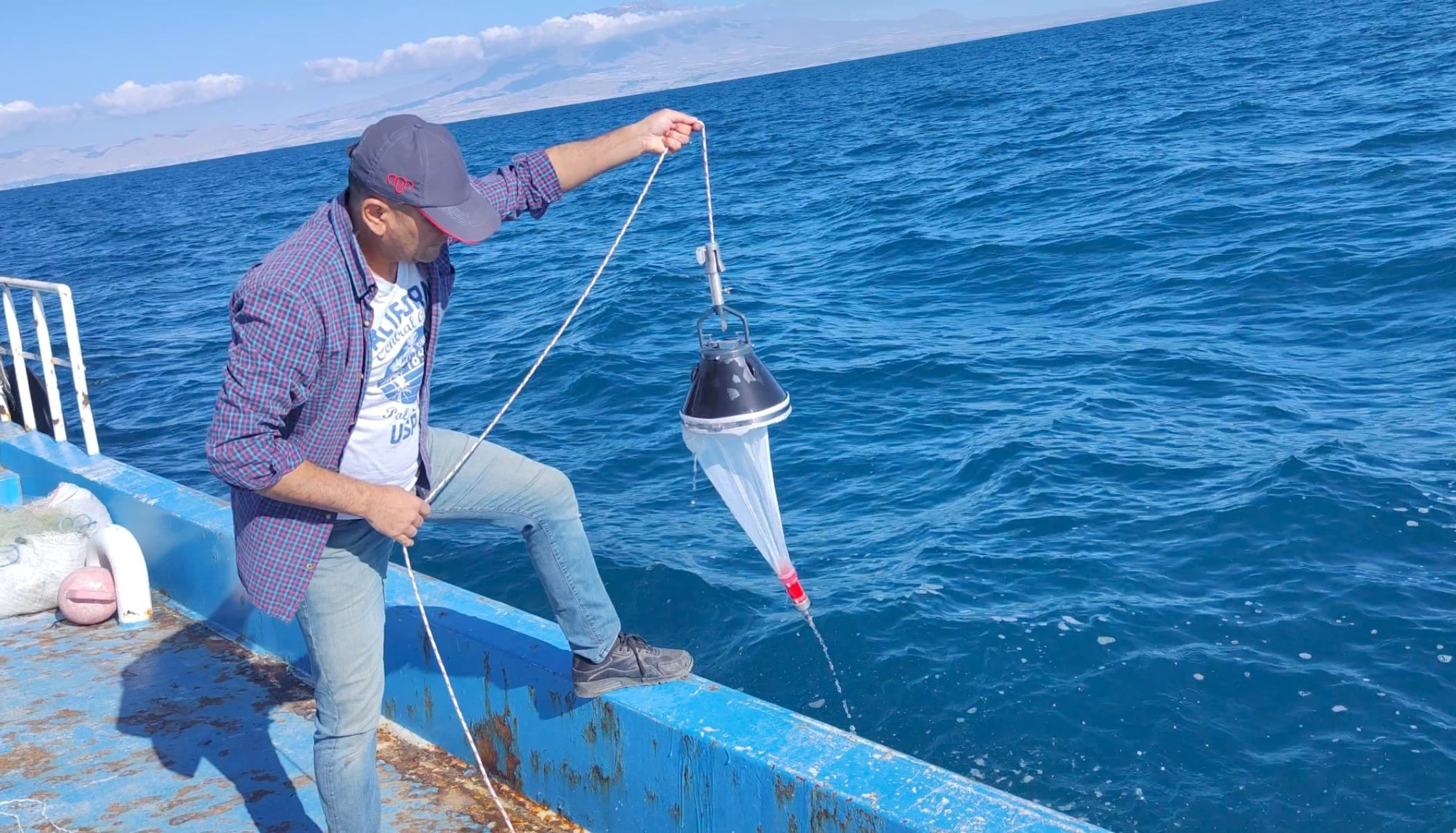 Van Gölü'nün endemik türü olan inci kefalinin stoku, göç hareketi, alansal ve derinliğe bağlı dağılımının araştırılması için başlatılan proje kapsamında bilim insanları, Van Gölü'nde birbirine paralel 28 hat boyunca toplam bin kilometrelik hidro-akustik t