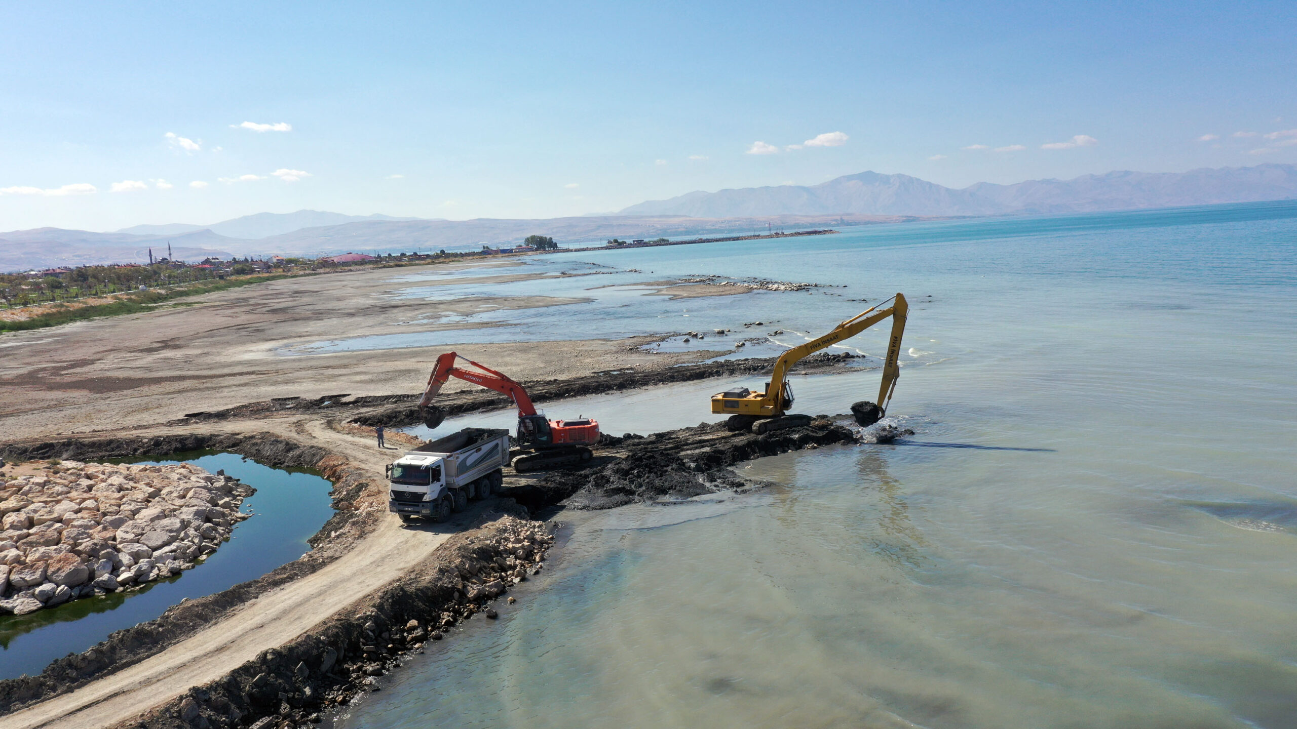 Denizden yüksekliği 1700 metre, yüz ölçümü 3 bin 713 kilometrekare ve derinliği yaklaşık 500 metre olan Türkiyenin en büyük gölü Van Gölü, doğası ve saklı koylarıyla yerli ve yabancı turistlerin dikkatini çekerken, gölün kirlilikten korunması için Büyükşehir Belediyesi Çevre Koruma ve Kontrol Dairesi Başkanlığı koordinasyonunda, sahil bandında 2 yıldır sürdürülen çalışmalarda şu ana kadar 1 milyon 710 bin metreküp dip çamuru ve balçık çıkarıldı. Tuşba ilçesi İskele Mahallesi sahil kısmında başlatılan birinci etap çalışmalar tamamlanırken, İpekyolu ilçesi Yaşar Kemal Parkında ikinci etap, Yüzüncü Yıl Üniversitesi ve İskele 15 Temmuz Parkında ise üçüncü etap çalışmaları sürüyor. 100 iş makinesi ve 100ün üzerinde personelle yürütülen çalışmalarla gölün 14 kilometrelik sahil bandında çalışmalar sürerken, Van Büyükşehir Belediye Başkanı Abdullah Zeydan ve beraberindekiler çalışmaları yerinde inceledi.