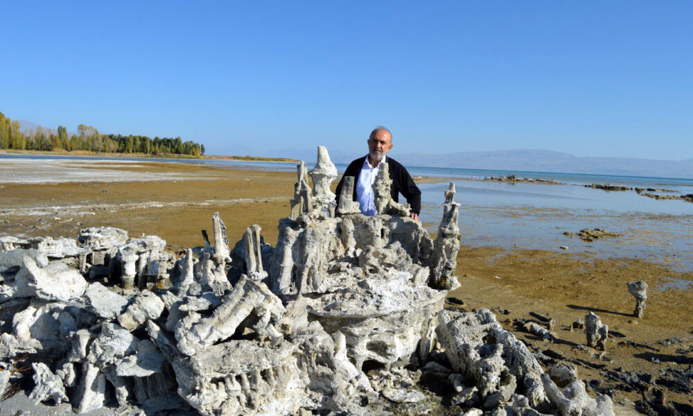 Van Gölü’nün çekilmesiyle ortaya çıkan mikrobiyalitlere fotoğrafçı ilgisi