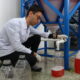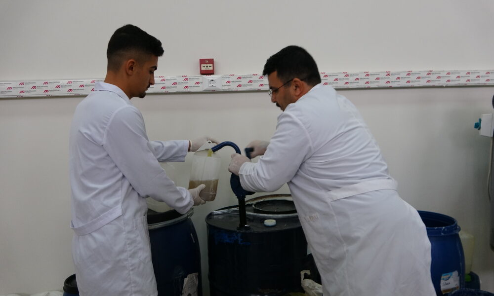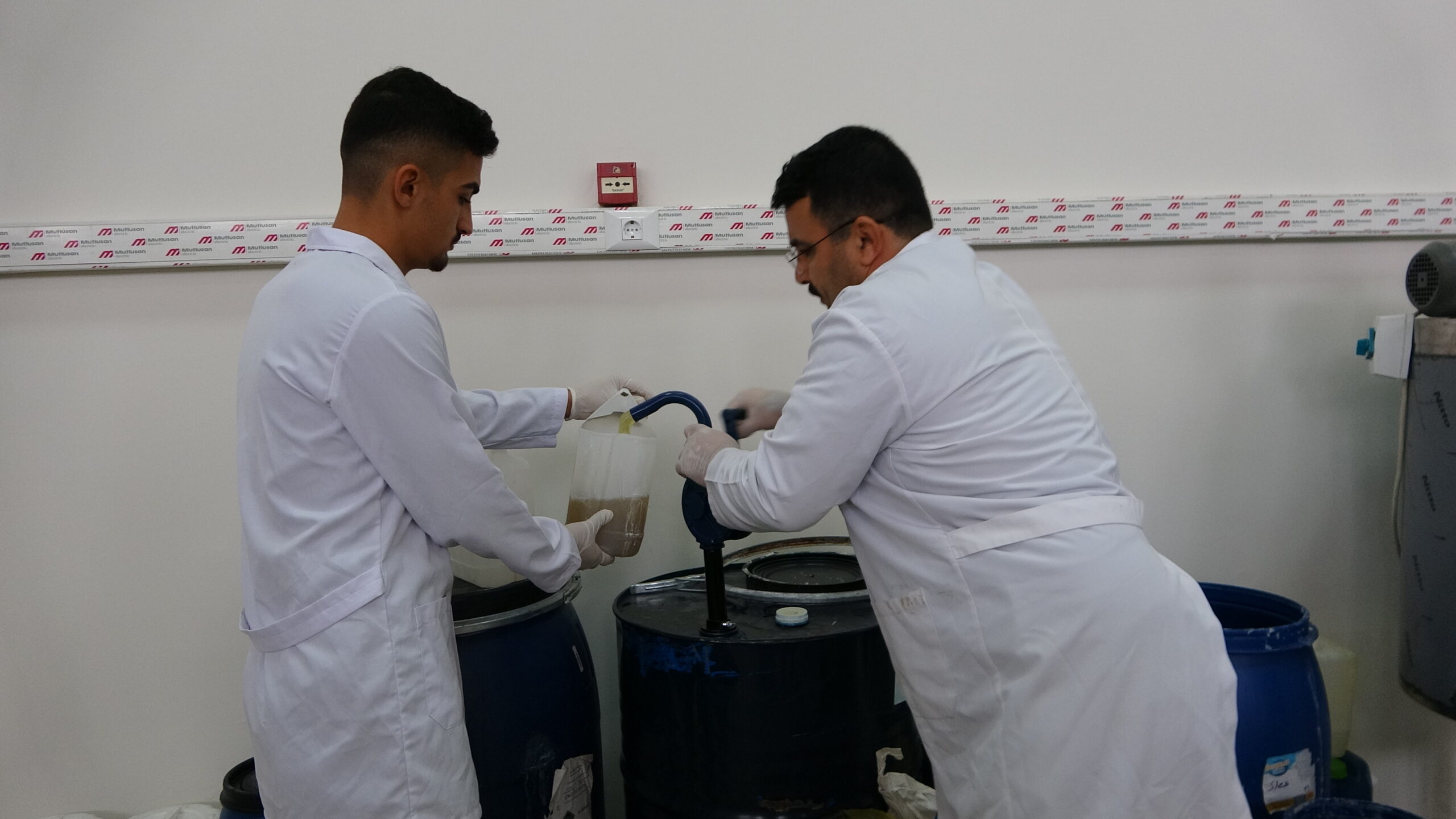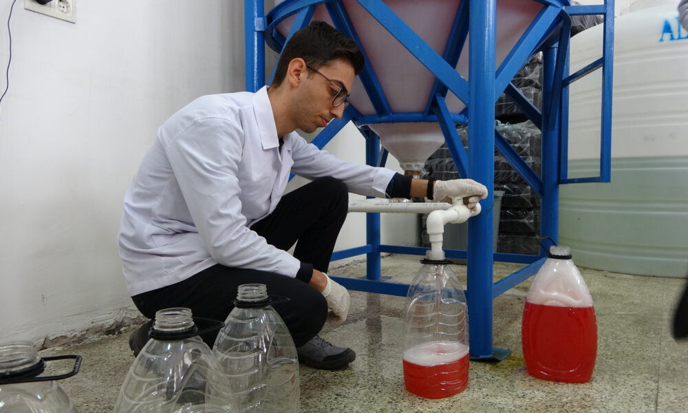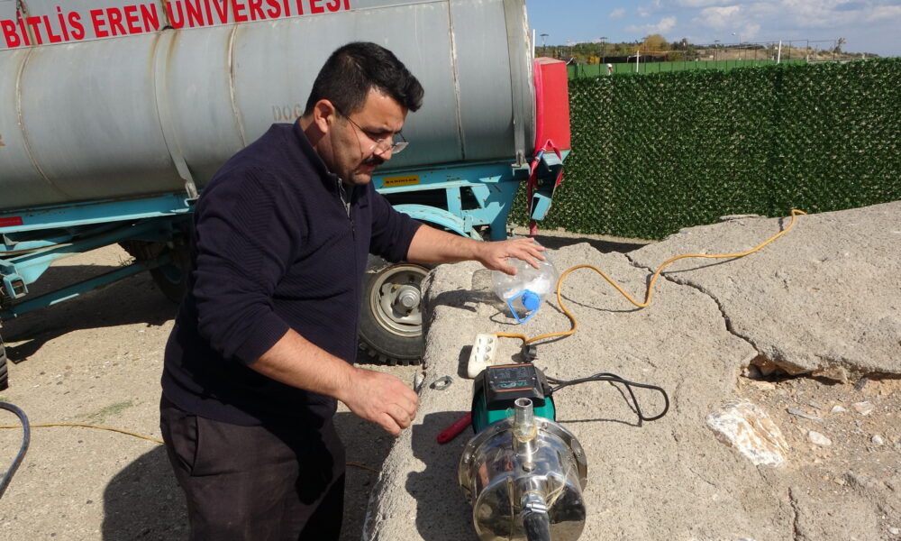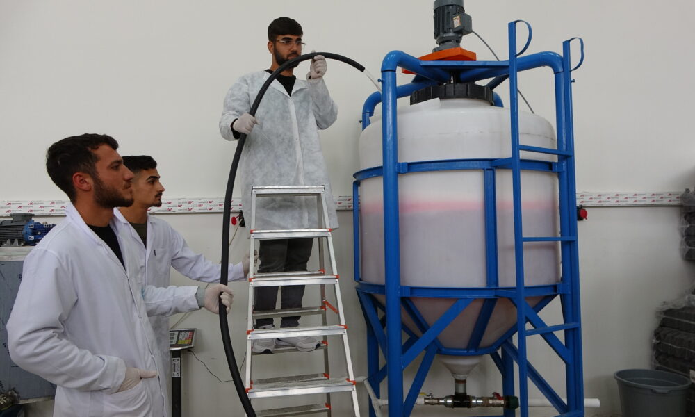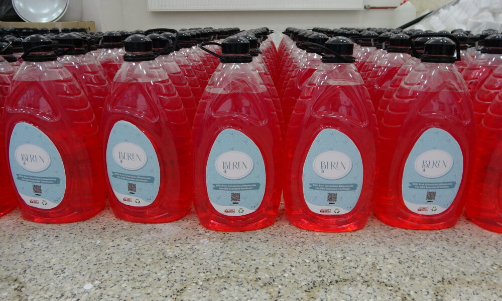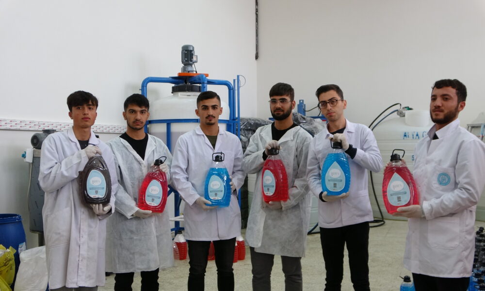 • Bitlis Eren Üniversitesi (BEÜ) Organize Sanayi Bölgesi Meslek Yüksekokulu bünyesinde yürütülen proje kapsamında, Van Gölü’nün sodalı suyu kullanılarak sıvı sabun üretimi yapıldı. Fotoğraf: Özcan ÇİRİŞ/Bitlis,(DHA)