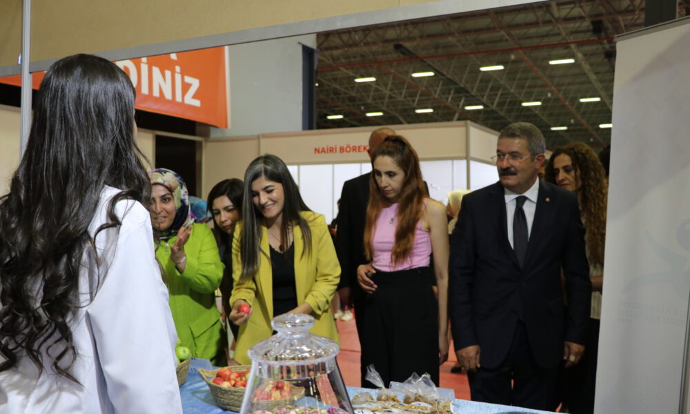 • Van'da Ticaret ve Sanayi Odası öncülüğünde bu yıl ikincisi düzenlenen 'Gurme ve gastronomi fuarı'na yurtiçi ve yurtdışından 88 firma ve kurum katıldı.Fuara katılan Büyükşehir Belediyesi Eşbaşkanı Neslihan Şedal, stantları gezdi. Fotoğraf: Behçet DALMAZ/V