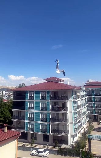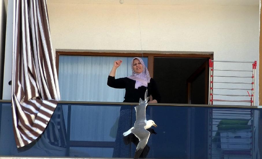 İtfaiye eri Özgür Yıldız, “Bugün aldığımız ihbar üzerine Camikebir Mahallesi’nde bulunan binanın önüne geldik. 5 katlı binanın çatısından ipe asılı bir martının çırpındığını görünce merdiven yardımı ile onu 5’inci katın balkonuna indirdik. Daha sonra eve gidip martının ayağına dolanan ipi çözüp doğal yaşama bıraktık” dedi.