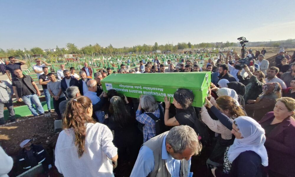 Van'da kaybolduktan 18 gün sonra cansız bedeni bulunan üniversite öğrencisi Rojin Kabaiş'in (21) cenazesi, otopsi işlemlerinin ardından getirildiği memleketi Diyarbakır’da toprağa verildi. Fotoğraf: Gıyasettin TETİK / Diyarbakır, (DHA)