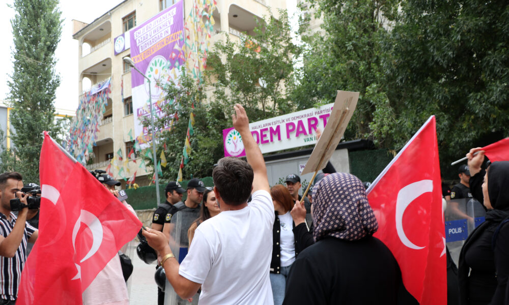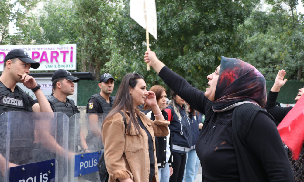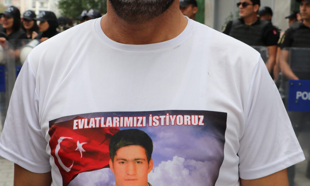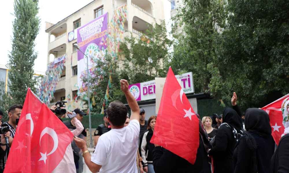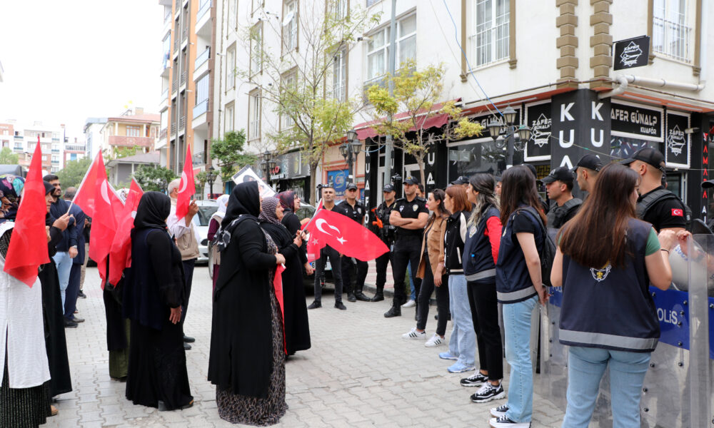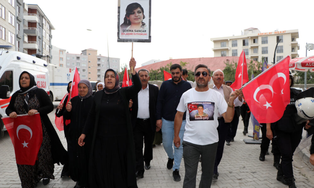 Terör örgütü PKK tarafından çocukları kaçırılan aileler, 89uncu haftada da Menekşe Sokakta bir araya geldi. Aileler, ellerinde Türk bayrakları, çocuklarının fotoğrafları ile DEM Parti il binasına kadar yürüdü. Yürüyüş sırasında polis de güvenlik önlemi aldı. DEM Partide çalınan müzik sesine tepki gösteren aileler, ‘Kahrolsun PKK’, Şehitler ölmez, vatan bölünmez sloganları attı.