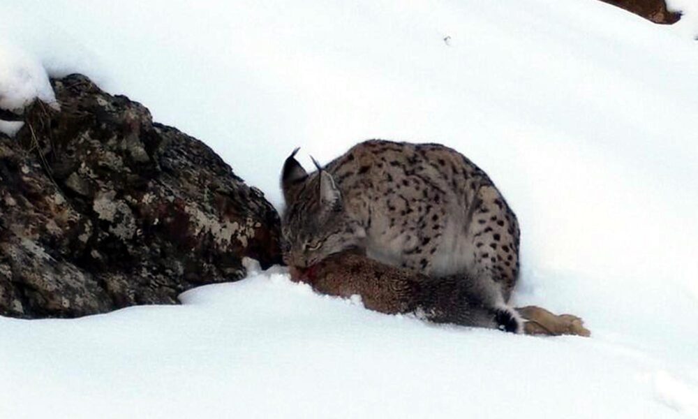 Refahiye ilçesi Kırkbulak köyünde doğa fotoğrafları çeken Berfin Karataş, avladığı tavşanı yiyen bir vaşak fark etti. Bir süre avının başında bekleyen vaşak, daha sonra ağzına aldığı tavşanla uzaklaştı. O anları kayıt altına alan Karataşın sanal medya hesabından paylaştığı görüntüler, kısa sürede çok sayıda izlendi.