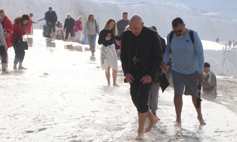 Reina, travertenlerde çıplak ayakla yürümenin nasıl bir his olduğu sorusuna ise “Diğer rahip arkadaşlarımla birlikte girdik. Burası son derece önemli ve çok ziyaret edilen bir merkez. Biz de büyük bir keyif alarak gezdik, çok hoşumuza gitti. Çünkü ilk kez görüyorduk” yanıtını verdi.