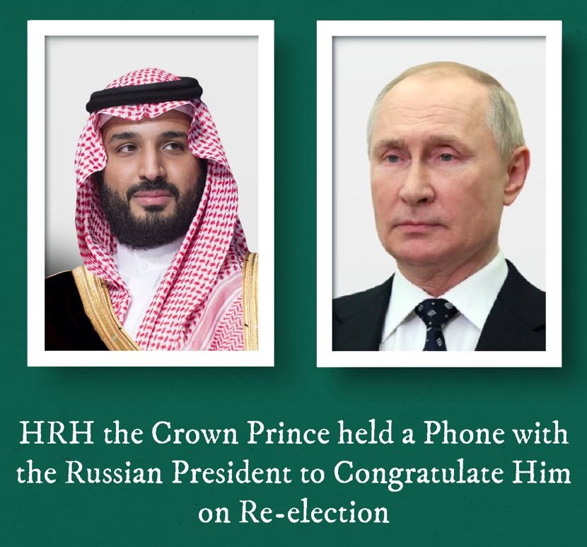 – Suudi Arabistan Veliaht Prensi ve Başbakanı Muhammed bin Selman, Rusya Başkanlık Seçimlerini kazanan Vladimir Putin ile telefonda görüşerek tebrik etti. Suudi Arabistan Dışişleri Bakanlığı’ndan bugün yapılan açıklamada Veliaht Prens Bin Selman’ın Putin’i seçim zaferinden dolayı tebrik ettiği ve ikili ilişkilerin ele alındığı belirtildi.