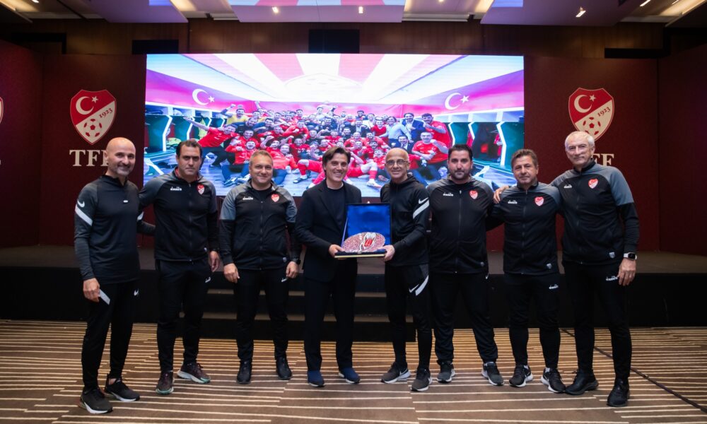 Türkiye Futbol Federasyonu Futbol Gelişim Direktörü Oğuz Çetin konuşmasının ardından A Milli Takım Teknik Direktörü Vincenzo Montellaya plaket takdim etti.