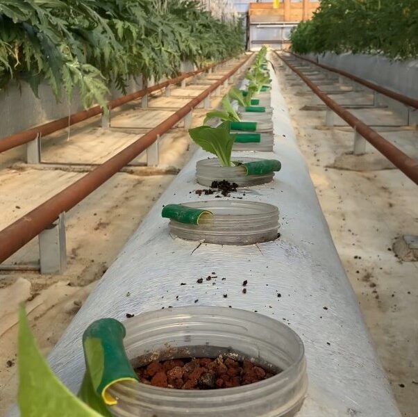 Kocaeli'de bir dönümlük serada ham maddesi Türkiye’de olan ve yapılan testlerden insan ve bitki sağlığına zararı bulunmadığı tespit edilen volkanik cüruf kullanılarak topraksız tarım yapılıyor. Fotoğraf: Erol Polat/Darıca(Kocaeli),(DHA)