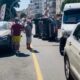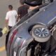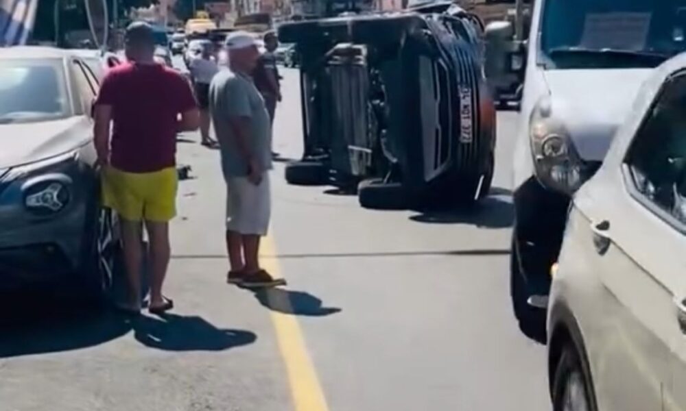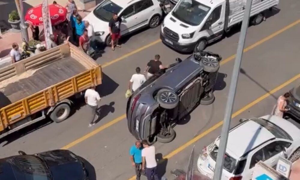Yalova’da cip, park halindeki 2 otomobile çarparak devrildi; kaza kamerada