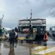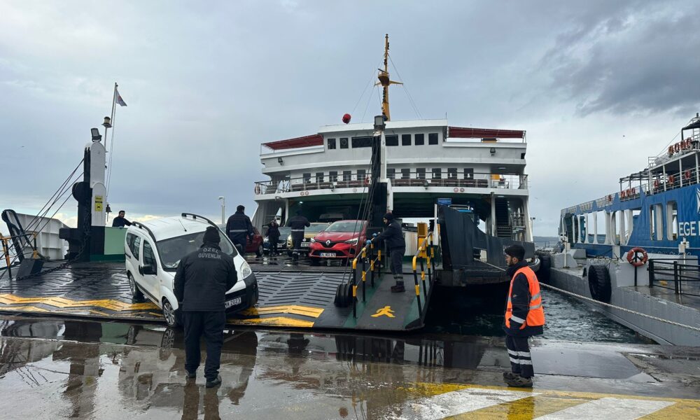 Yalova'da etkili olan fırtına nedeniyle Topçular Limanı'na giremediği için Yalova Limanı'na yanaşan feribotta bulunan 32 araç ve 42 yolcu, güvenli bir şekilde tahliye edildi. Fotoğraf: Yalova, (DHA)