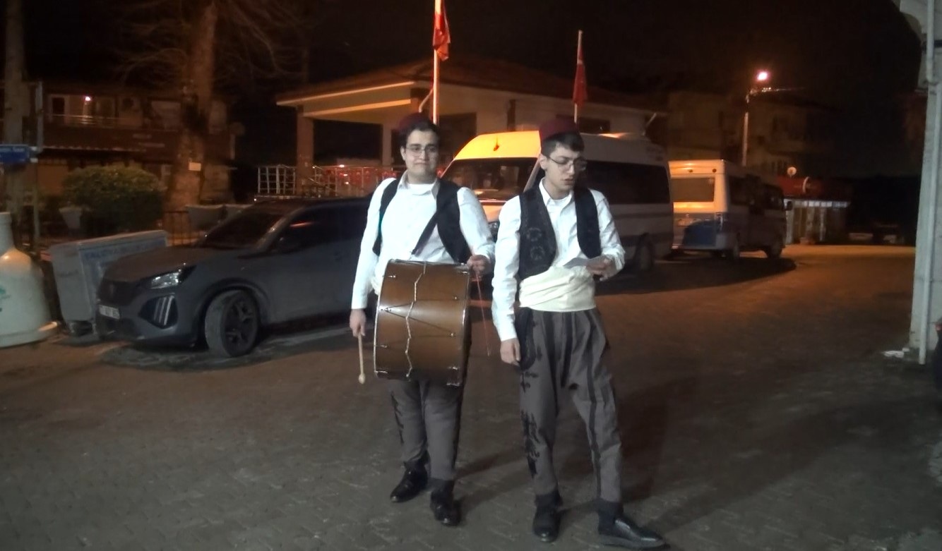 Yalova’da şalvar ve kuşak giyen öğrenciler, davul çalarak sahur geleneğini yaşatıyor/Ek fotoğraflar