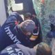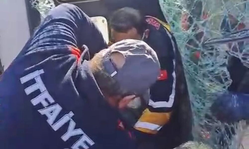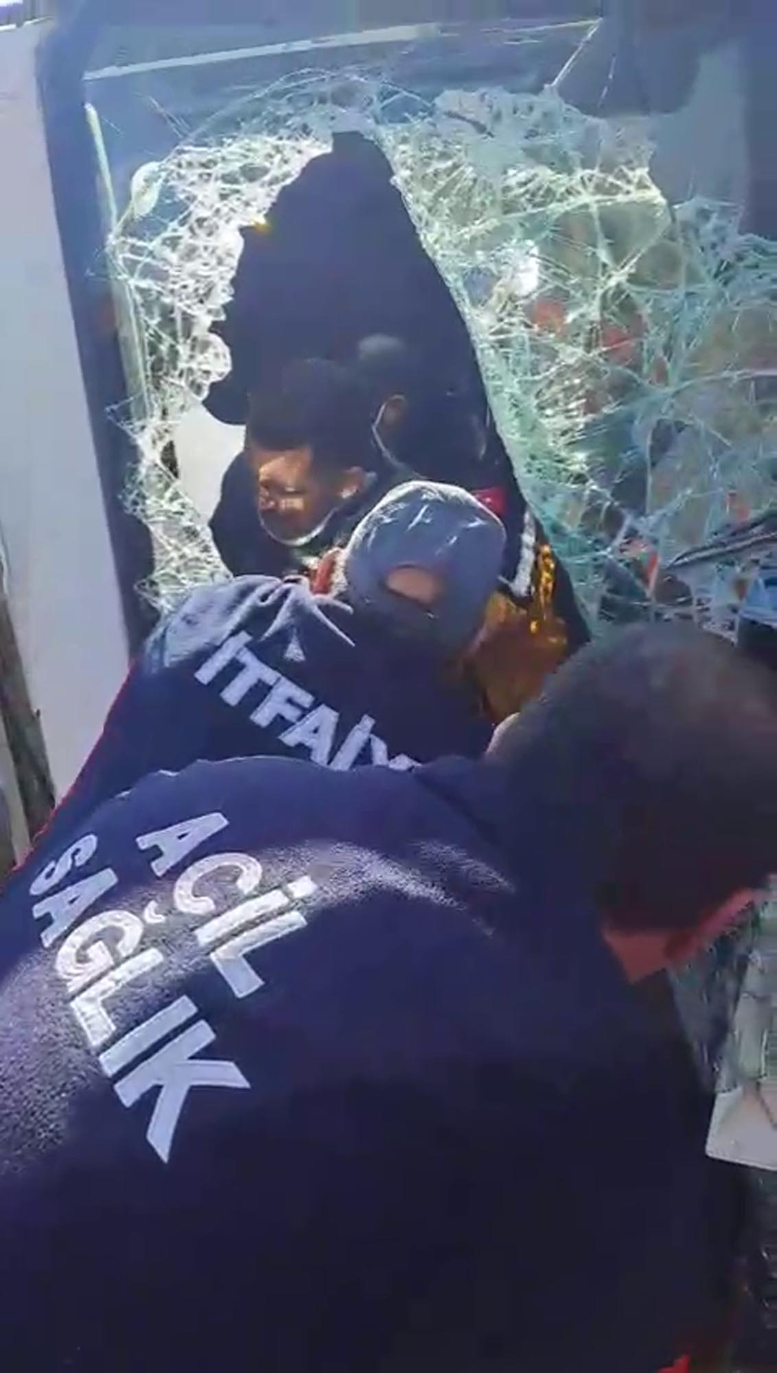 Yan yatan kamyonda yaralanan sürücüyü camdan çıkardılar