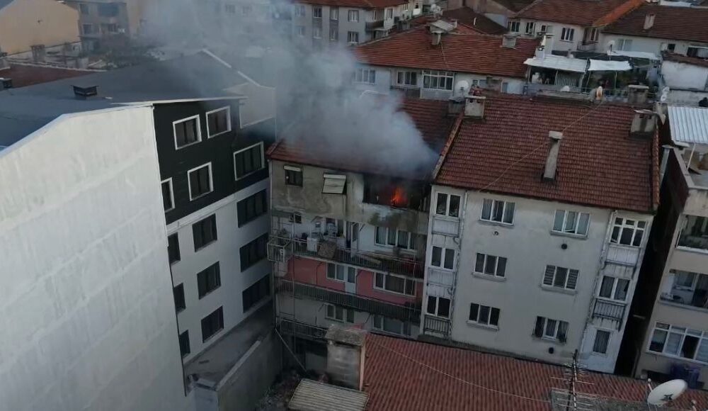 Yanan daireden alt komşusu kurtardı; yangın dronla görüntüledi