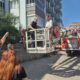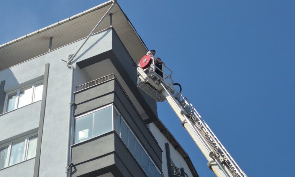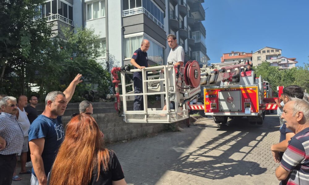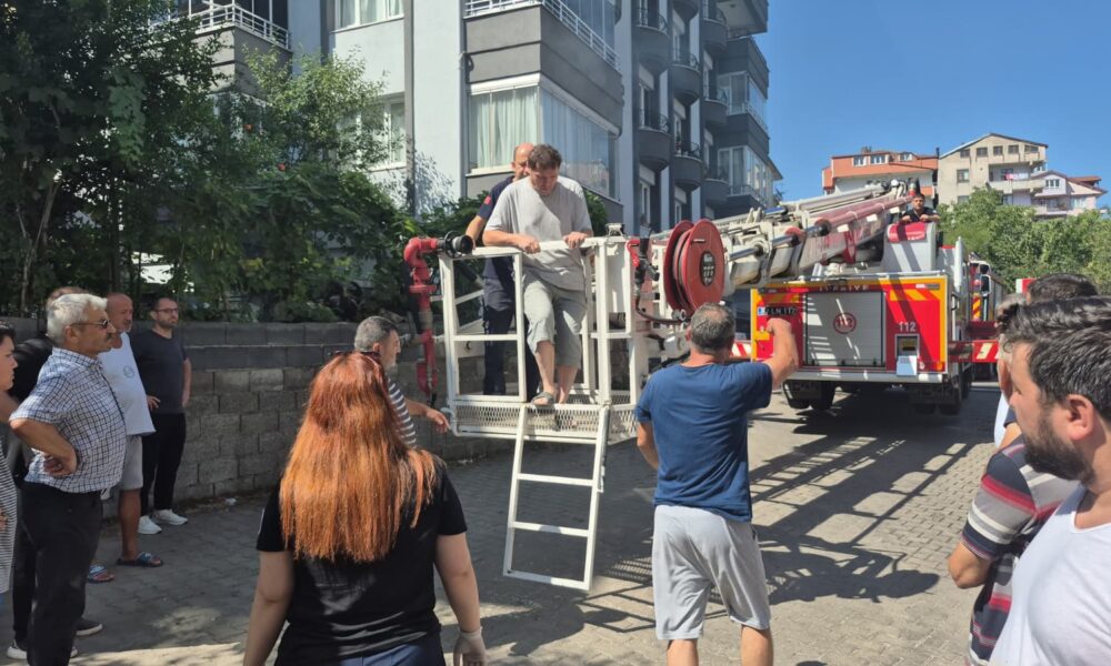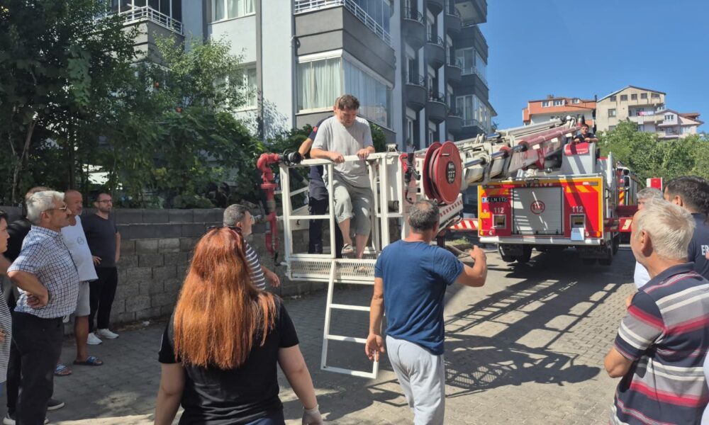 Yangın çıkan apartmanda mahsur kalan 5 kişi, itfaiye merdiveniyle tahliye edildi
