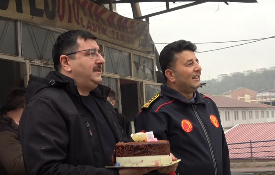 İnönü Mahallesi İnebolu Caddesinde yer alan sanayi sitesindeki oto lastik esnafı, 25 Eylül- 1 Ekim tarihleri arasında kutlanan İtfaiyeciler Haftası kapsamında, sürpriz bir etkinlik düzenlendi. 112 Acil Çağrı Merkezine İş yerimizde yangın çıktı diye ihbarda bulunan esnaf, kısa sürede olay yerine ulaşan itfaiye ekibini pasta ve gösteri amaçlı yakılan ateşle karşıladı. İtfaiye personeline pasta ikram eden esnaf, itfaiye teşkilatının 311inci yıl dönümünü kutladı.